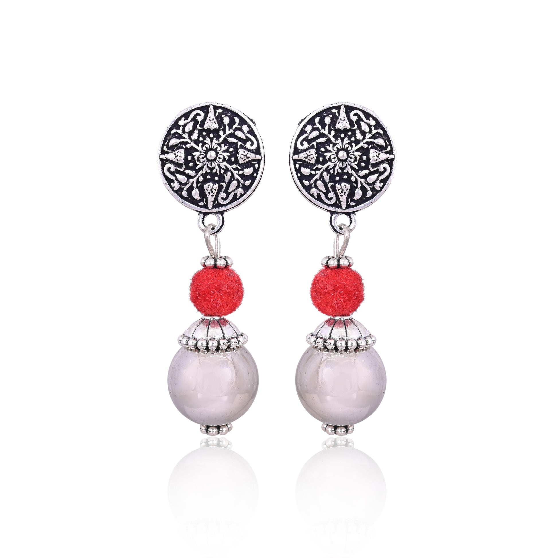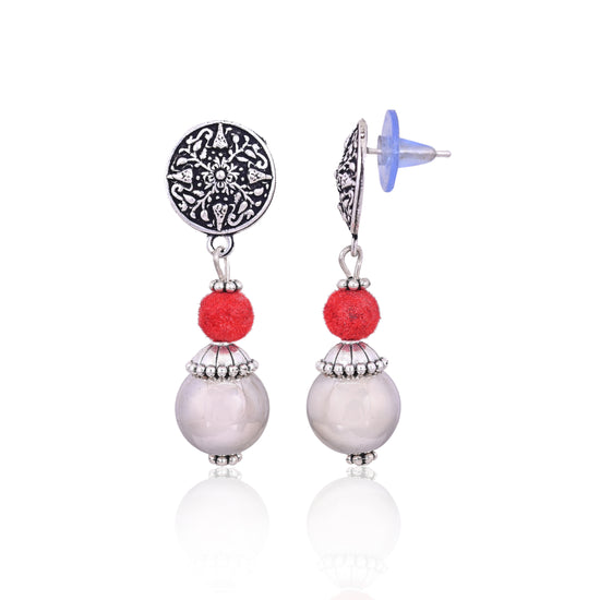Oxidized Silver with Pearl and Orange Beads Earrings