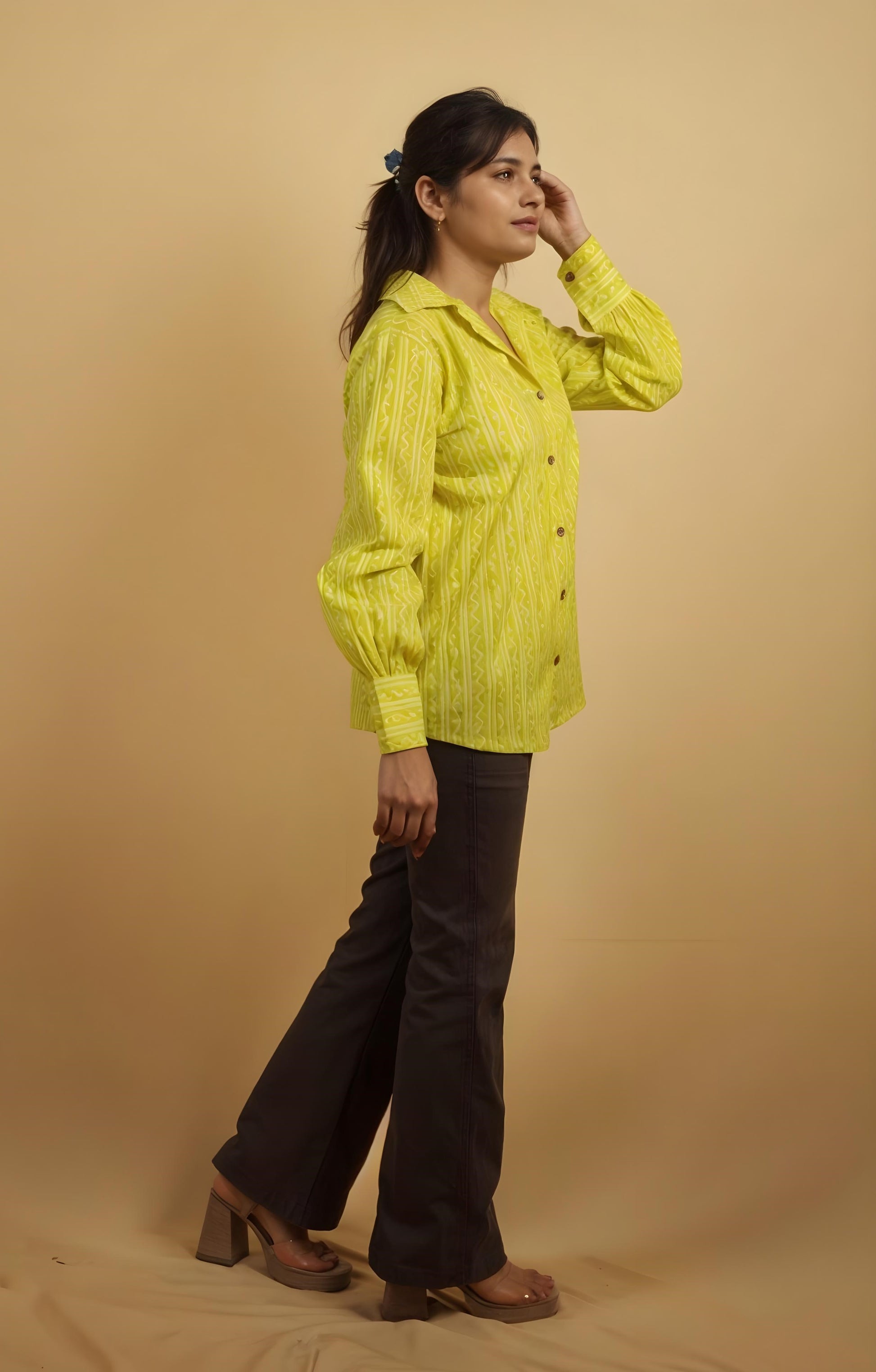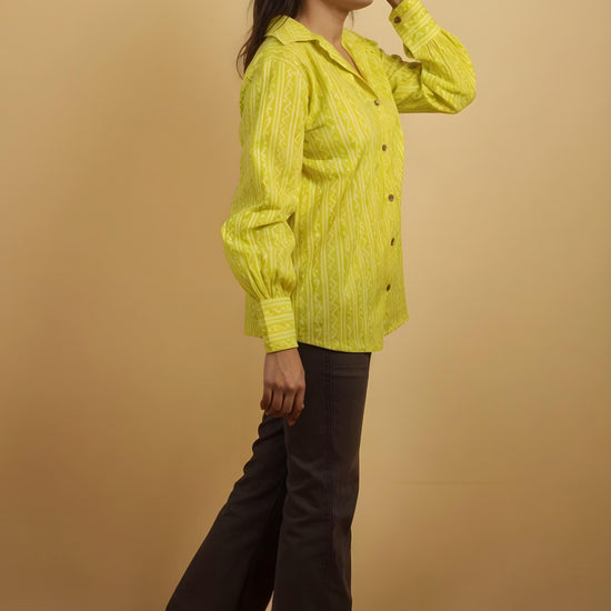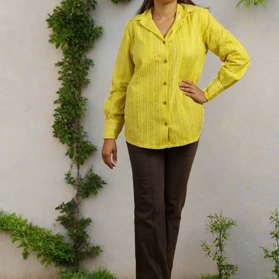 Convey your approach to style and fashion with this awesome oversize shirt in Jaipur print fabric from Nesara. Made from soft, breathable cotton, the shirt features a symmetric print pattern that blends traditional charm with a youthful silhouette. The oversize fit makes it perfect for pairing with jeans or leggings, offering effortless style for casual outings, work, or college.