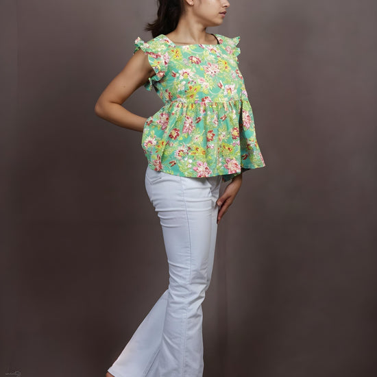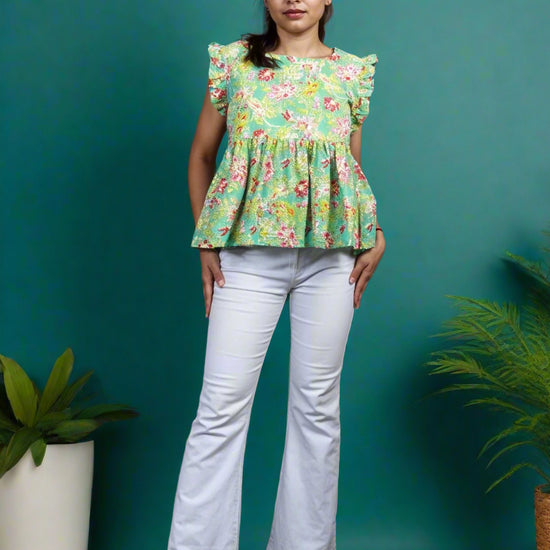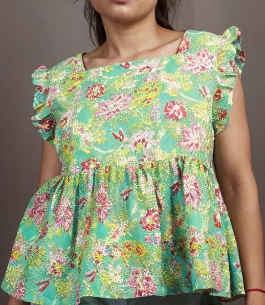 Add a touch of youthful style and awesome comfort to your everyday wardrobe with this fine print sleeveless short top from Nesara. Made from soft, breathable pure cotton fabric, it features an awesome print pattern that blends cultural charm with a delightful silhouette. The short length makes it ideal for pairing with jeans or palazzos, offering effortless style for casual outings or college.