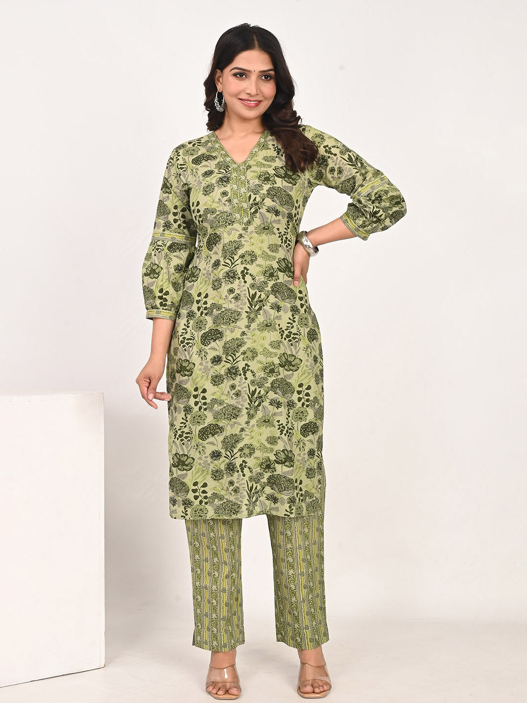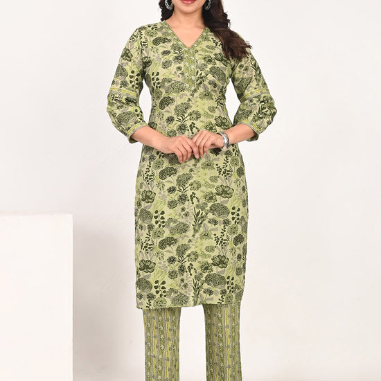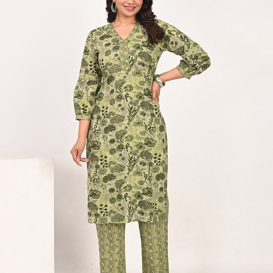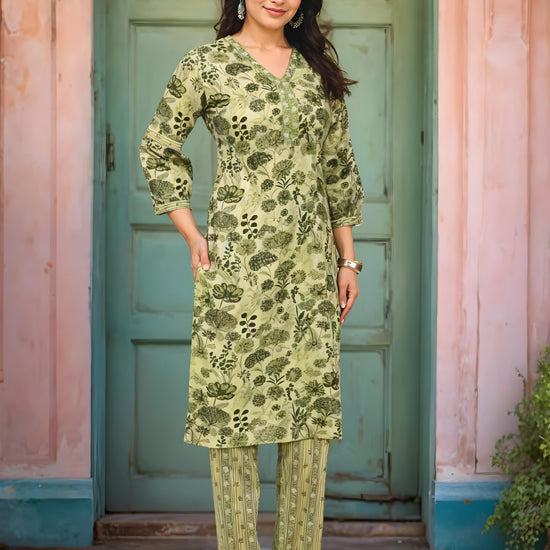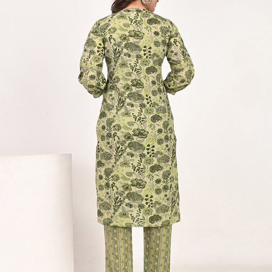 Nesara Green Printed Kurta & Pants Set