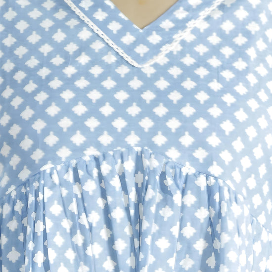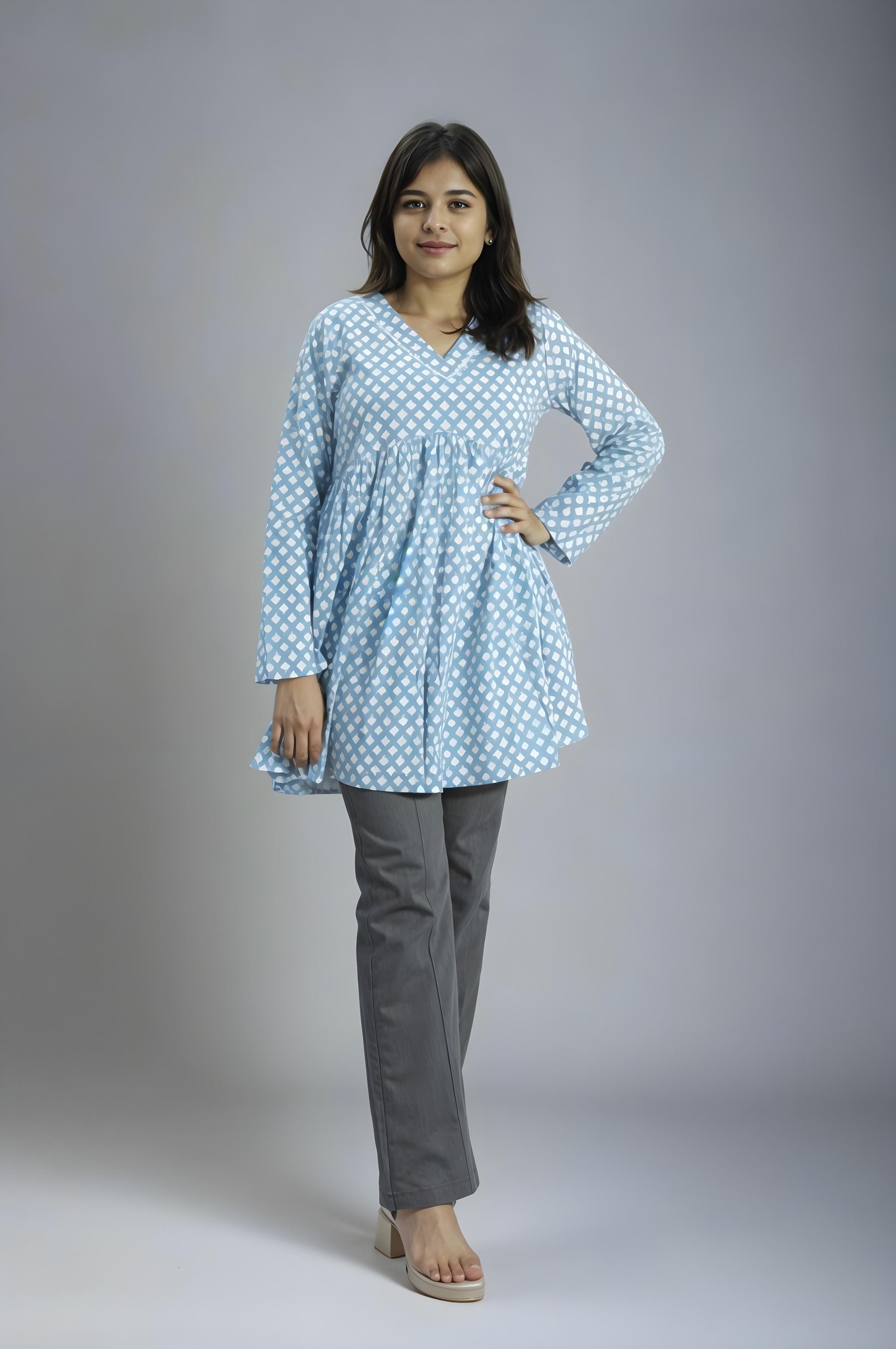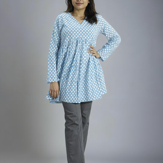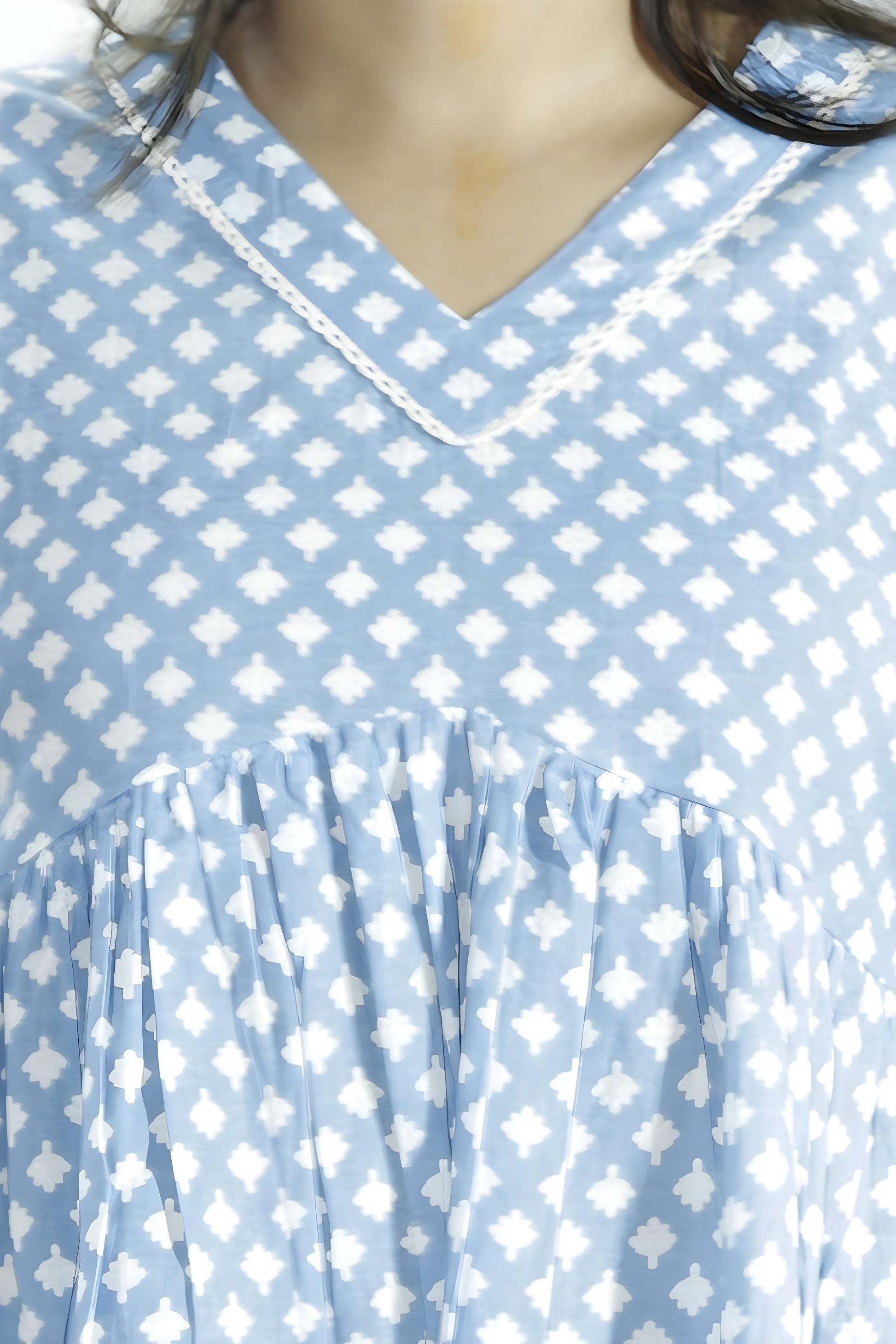 Nesara Light Blue Printed Flared Kurti IBSK013
