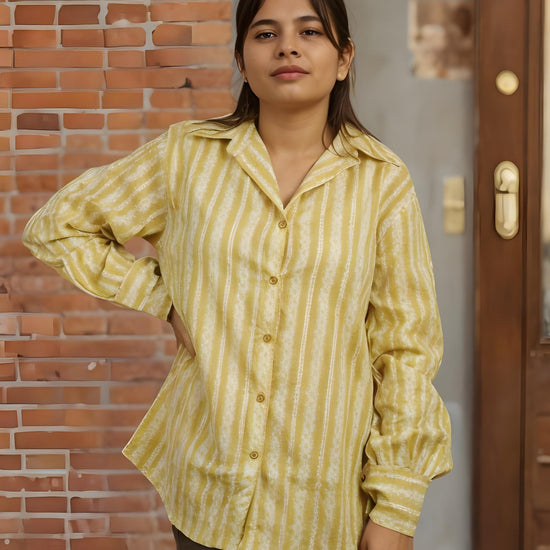 Convey your approach to style and fashion with this awesome oversize shirt in Jaipur print fabric from Nesara. Made from soft, breathable cotton, the shirt features a symmetric print pattern that blends traditional charm with a youthful silhouette. The oversize fit makes it perfect for pairing with jeans or leggings, offering effortless style for casual outings, work, or college.