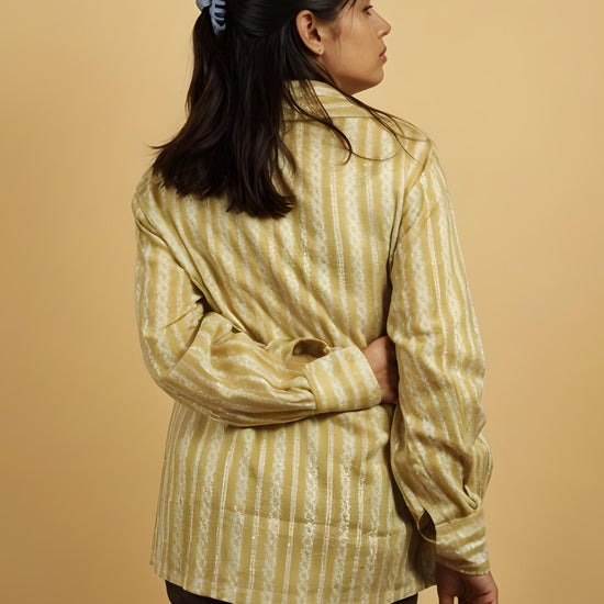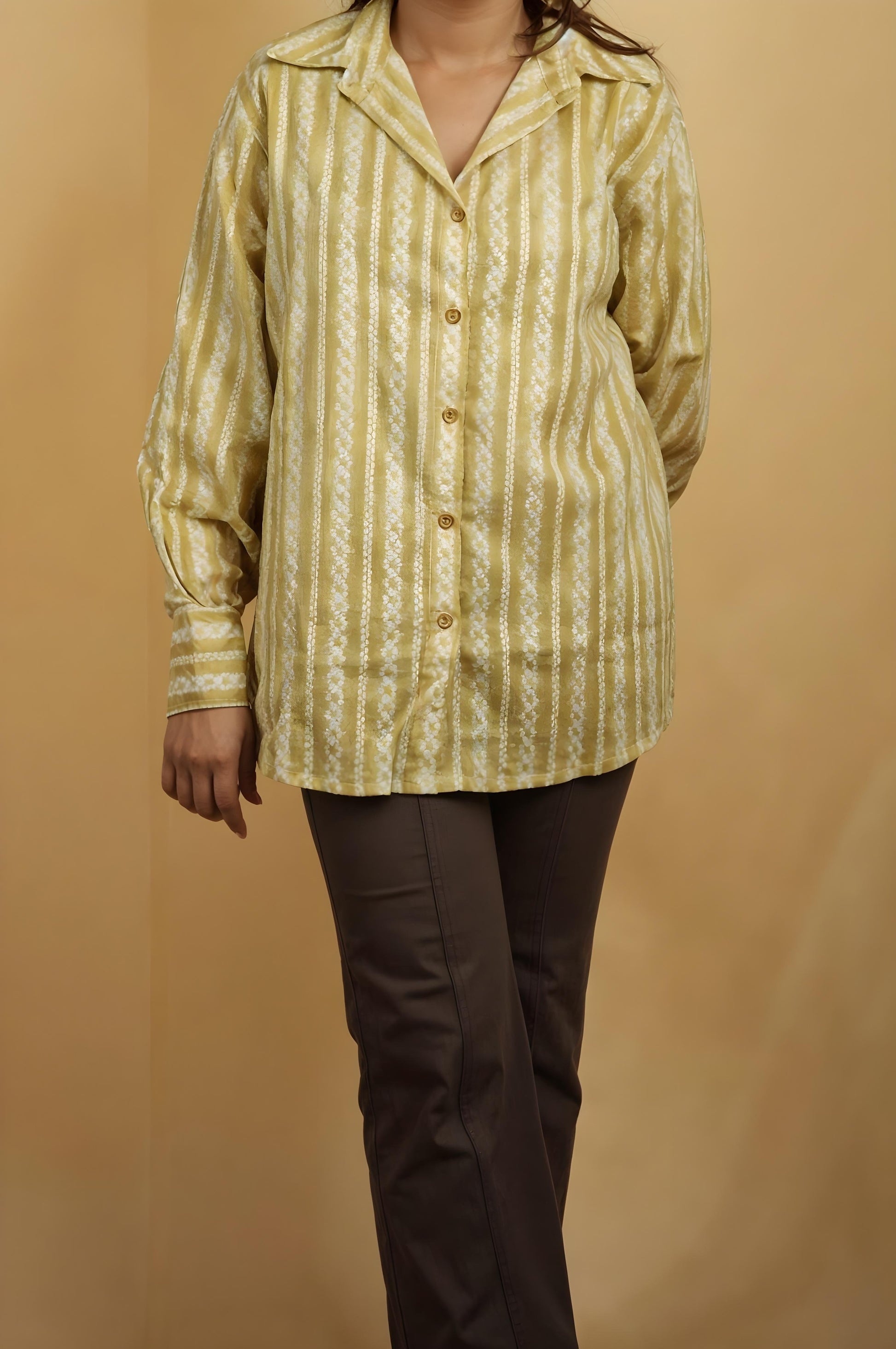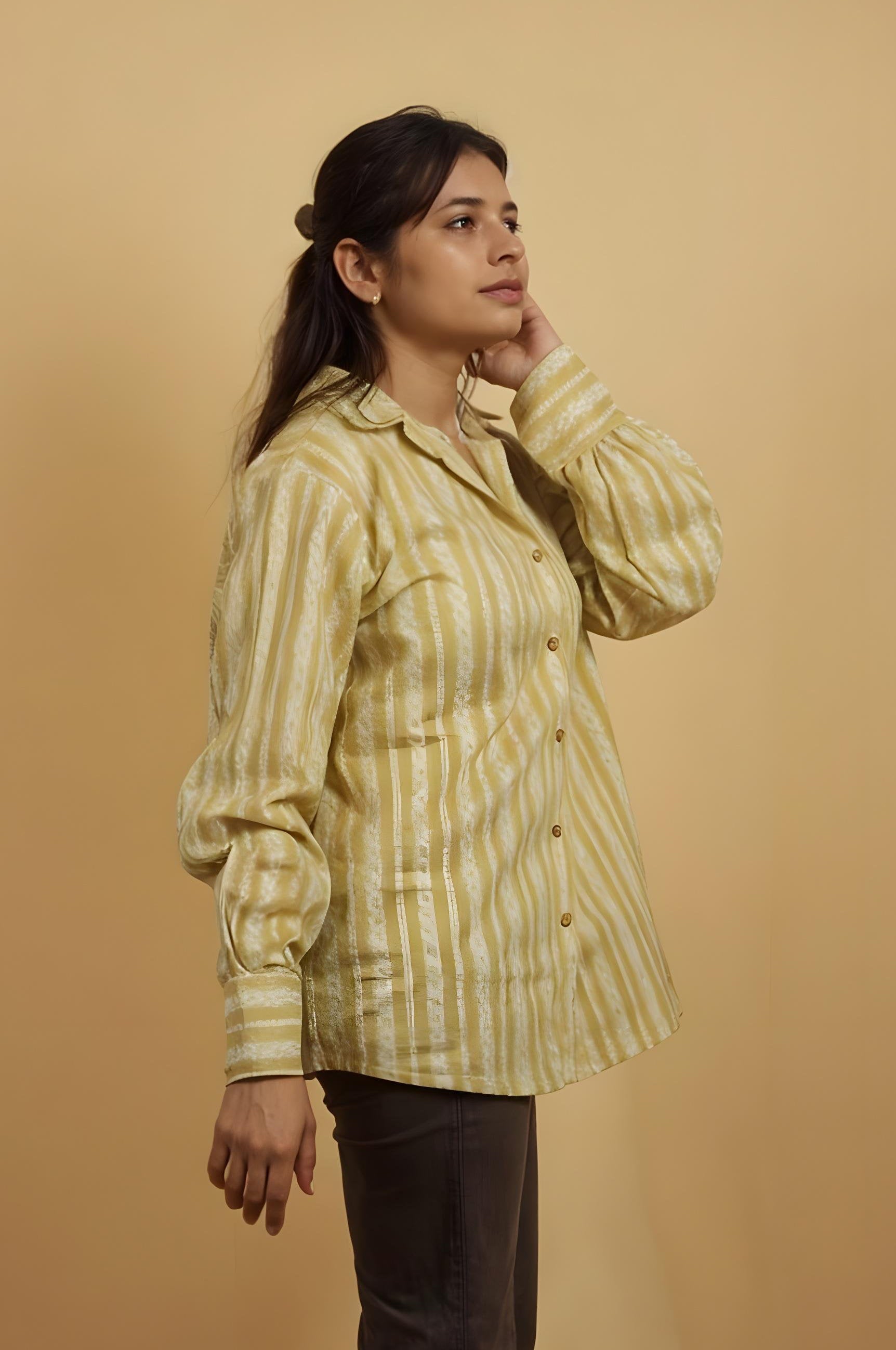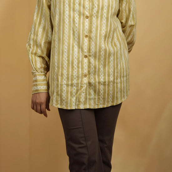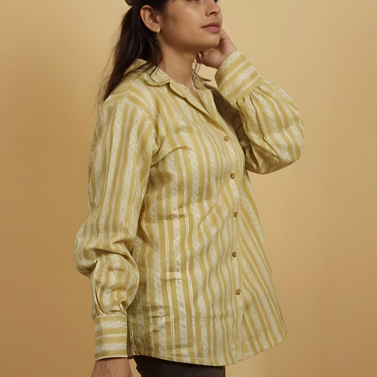 Nesara Light Brown Stripes Print Oversize Shirt IBS037