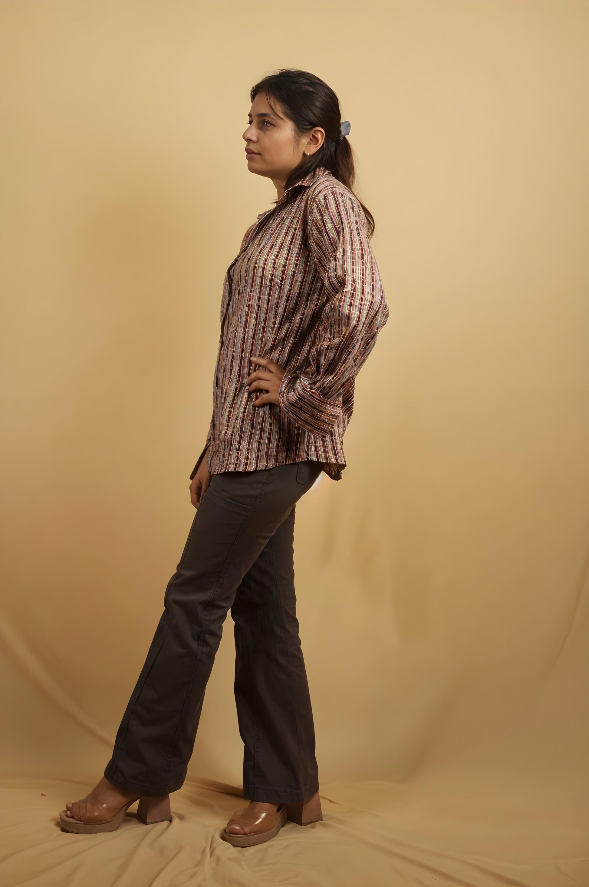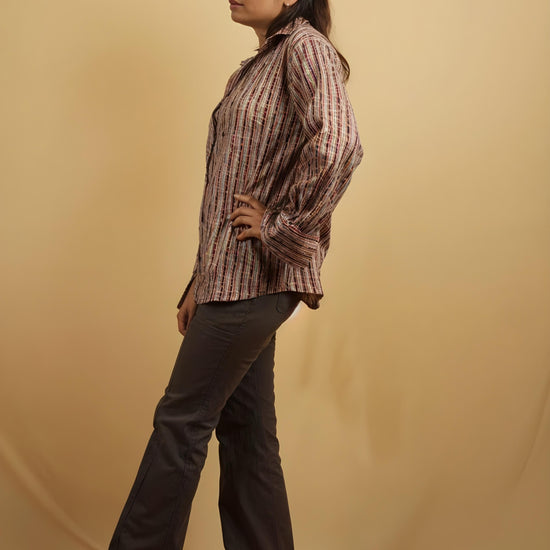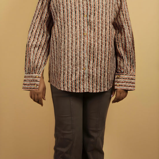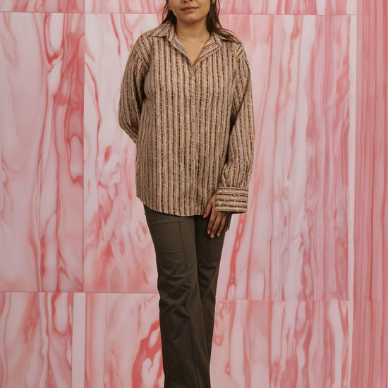 Nesara Multihued Stripe Print Oversize Shirt IBS040