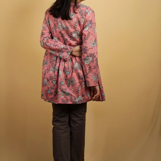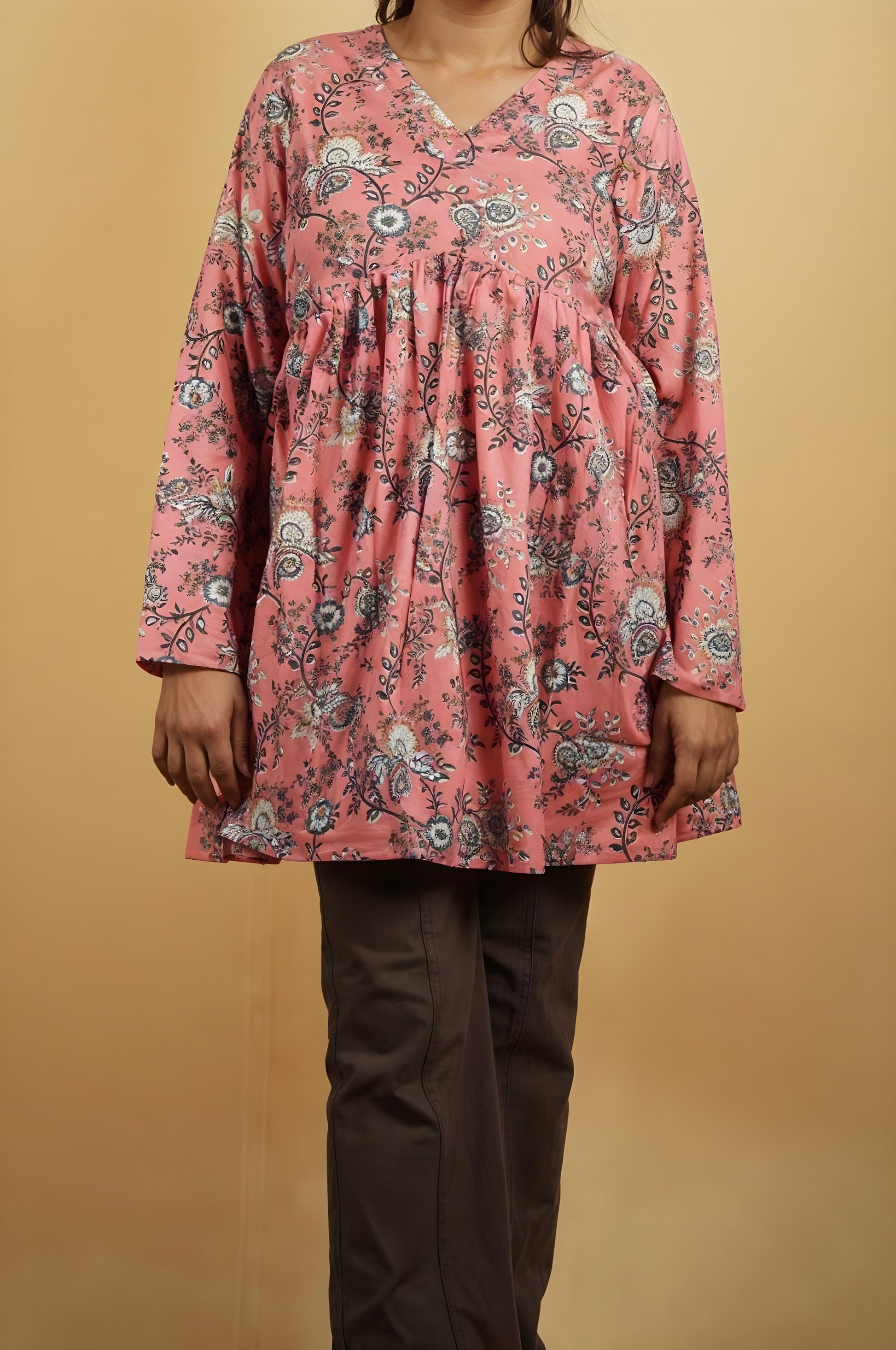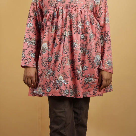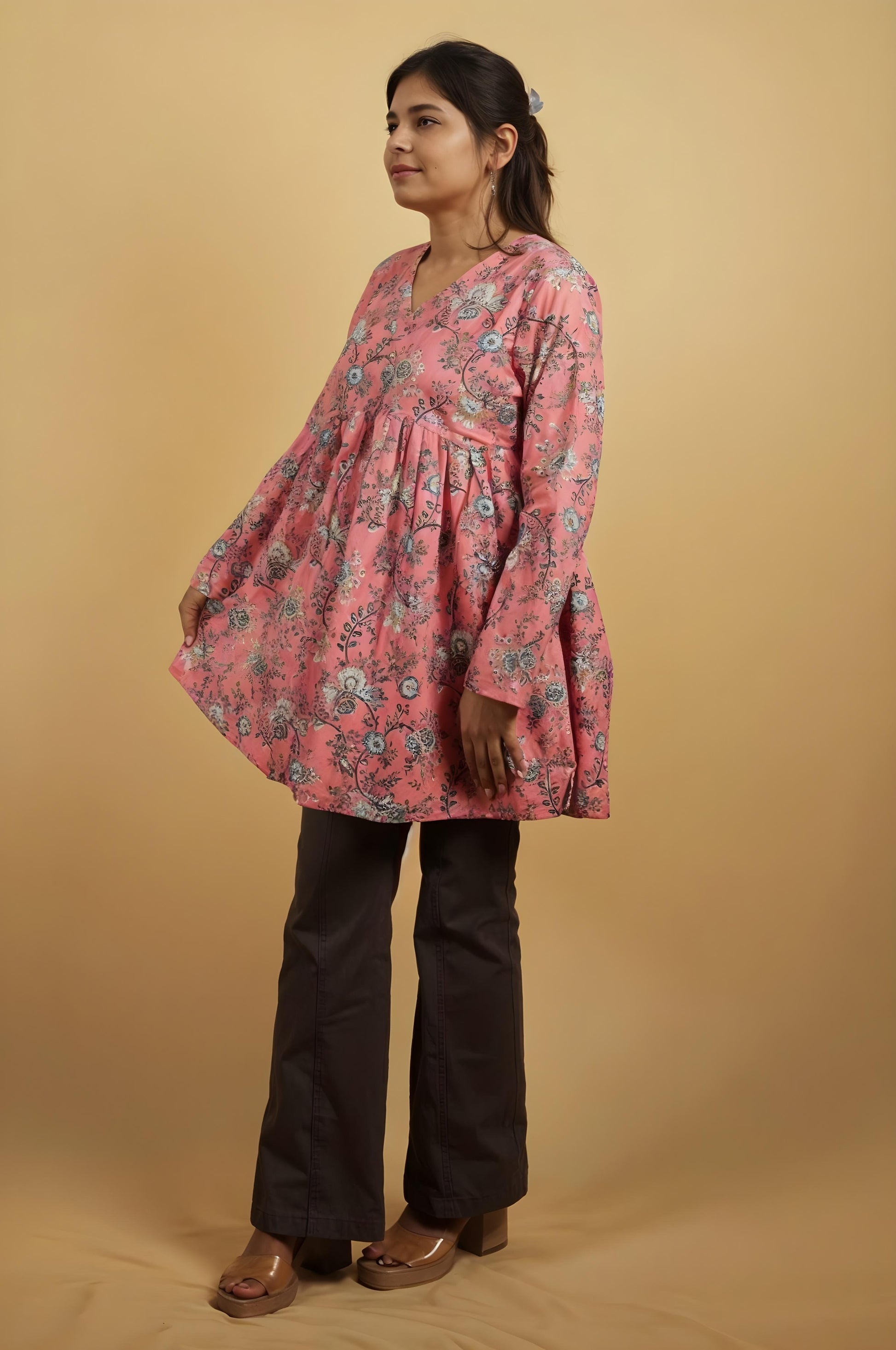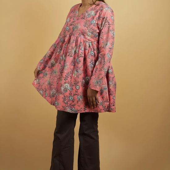 Add a touch of elegance and comfort to your everyday wardrobe with this fine print flared kurti from Nesara. Made from soft, breathable pure cotton fabric, it features an awesome print pattern that blends cultural charm with a traditional silhouette. The medium length makes it perfect for pairing with jeans or leggings, offering effortless style for casual outings, workwear, or college.