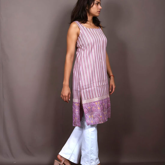 Nesara Violet Sleeveless Long Kurti with Lining IBSL090