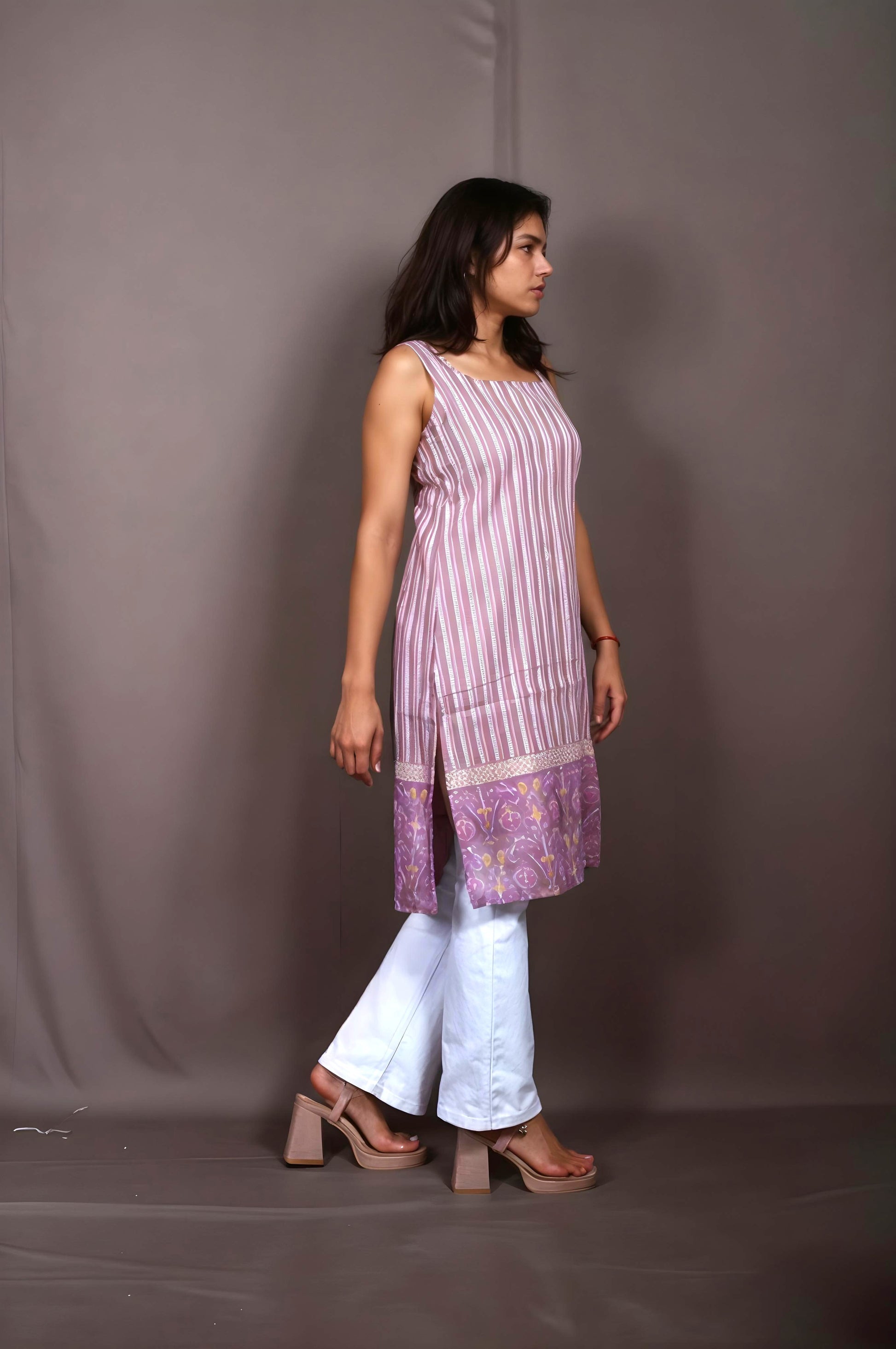 Style: Printed, sleeveless long kurti