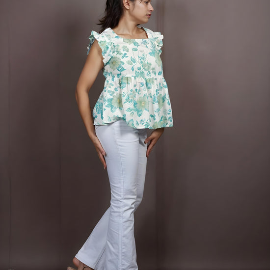 Add a touch of youthful style and awesome comfort to your everyday wardrobe with this fine print sleeveless short top from Nesara. Made from soft, breathable pure cotton fabric, it features an awesome print pattern that blends cultural charm with a delightful silhouette. The short length makes it ideal for pairing with jeans or palazzos, offering effortless style for casual outings or college.