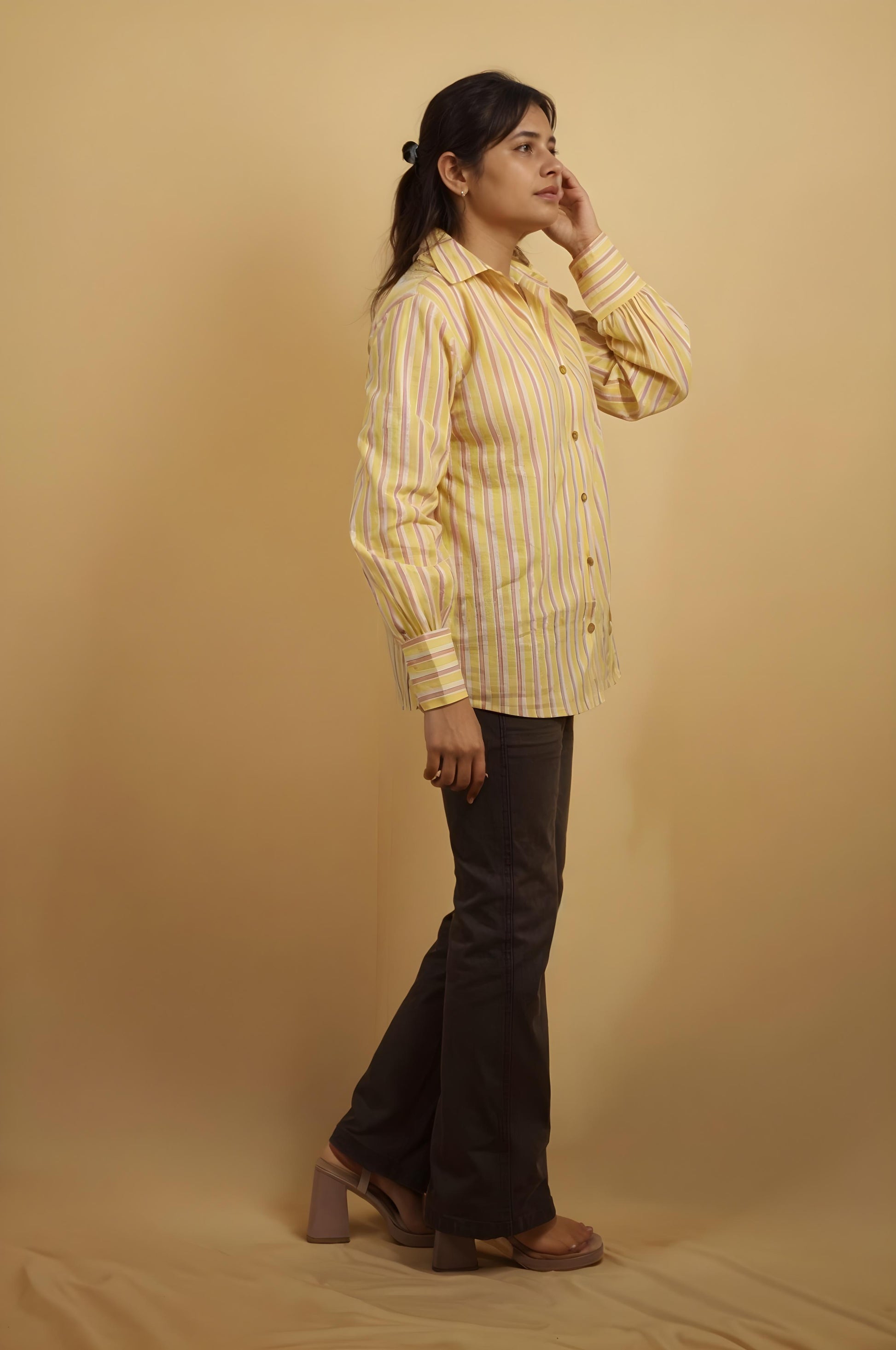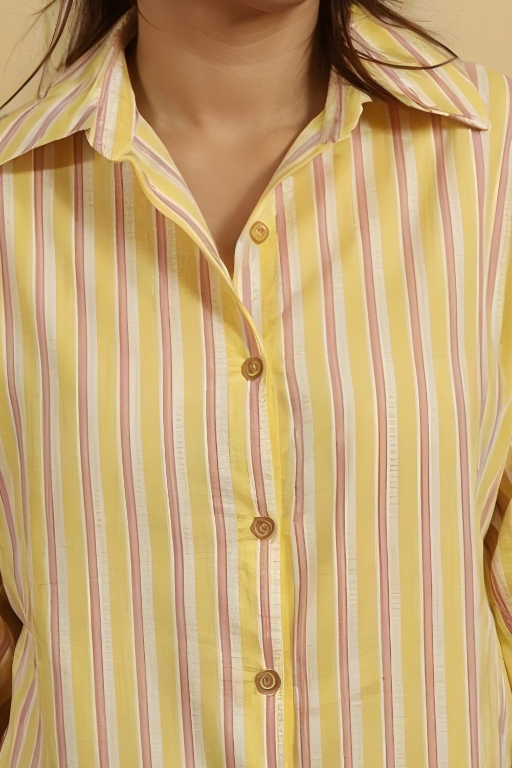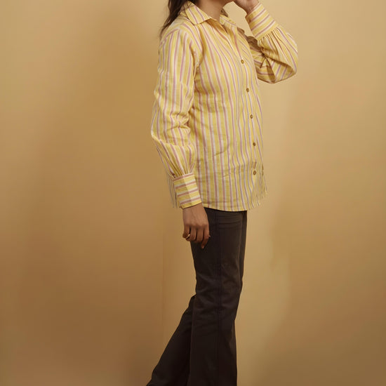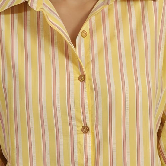 Nesara Yellow Print Oversize Shirt IBS023